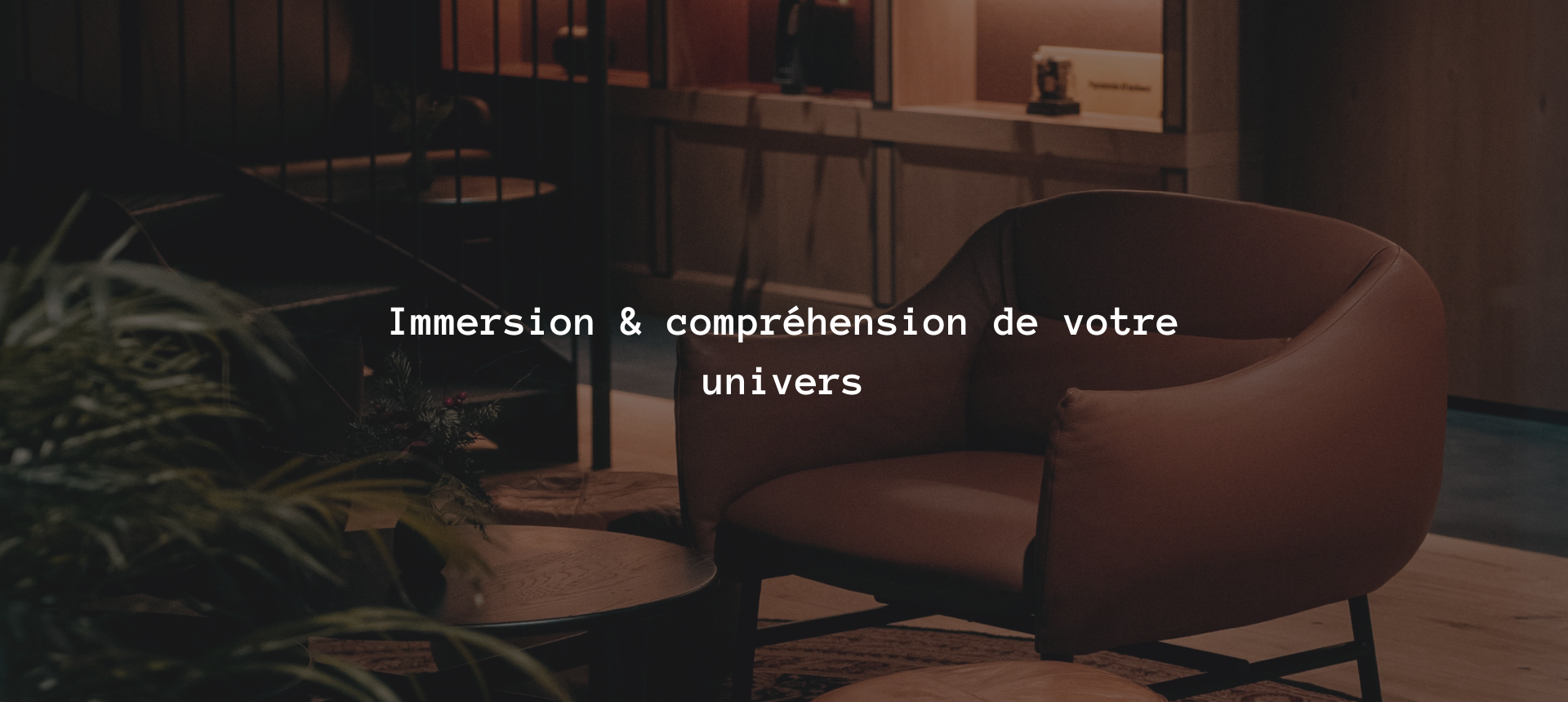 Tout débute par une étape d'écoute attentive et d'examen détaillé. Nous nous engageons à comprendre votre marque, vos principes fondamentaux, votre public cible, l'atmosphère que vous voulez instaurer et les autres aspects sensoriels que vous employez (visuels, musique, matériaux, couleurs).