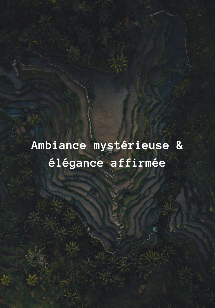 Une alliance rare : oud, santal, vétiver et épices pour un univers captivant et sophistiqué.